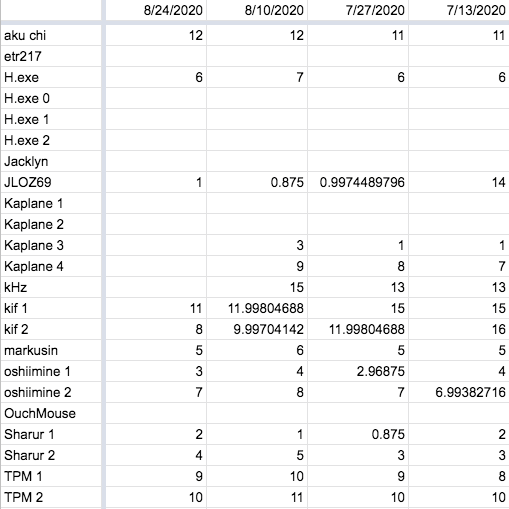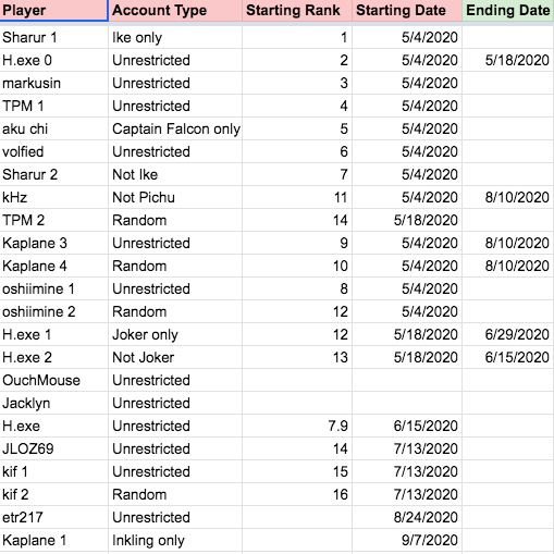 A while back, a number of us in the Dominion Discord community decided it would be fun to play some organized Smash Bros, as well. We created the Smash Ladder and I volunteered to handle the technical backend of things. We needed a system that would allow people to issue challenges to other players, submit match results, and rerank the players accordingly, all subject to a rather complex set of rules. I came up with a very complicated approach that modeled the expected behavior in a single massive formula. My friend Sam, when asked about it, was able to come up with a much simpler mathematical approach. (Benefits of having a degree in applied mathematics from MIT.) So that’s what we went with. It was still tricky to get Google Sheets to perform the calculations automatically and I’m proud of the solutions I came up with.